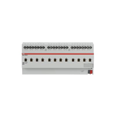 The switch actuator uses potential free contacts to switch 12 independent electrical loads via the ABB i-bus® KNX. The device features a manual operation and displaying of the switching state of the outputs. The 6 A device is especially suited to switch resistive, inductive or capacitive loads. The device is powered by KNX and requires no additional power supply